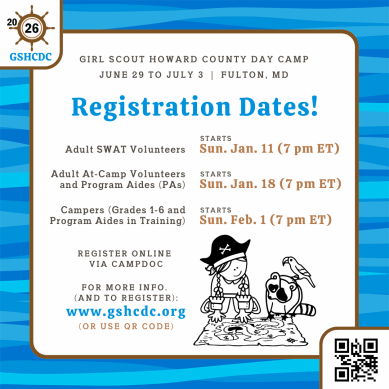 Ahoy, maties! Come enjoy traditional camp activities with our own Girl Scout spin to them. With exploration, adventure, and laughter galore, your camper is sure to have a blast with us!